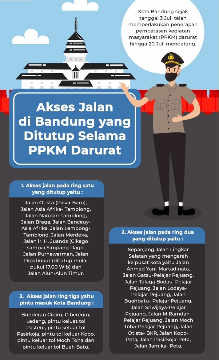 Berikut ini Daftar Jalan Yang ditutup selama PPKM Darurat di Bandung