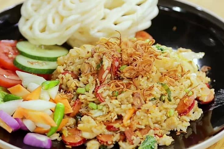 - Hidangkan nasi goreng seafood panas, dan jika Anda suka, taburkan irisan bawang merah goreng di atasnya.