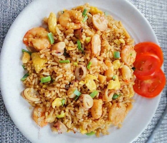 Variasi dari nasi goreng klasik ini melibatkan campuran udang, cumi-cumi, dan ikan. Tambahkan saus sambal atau kecap manis untuk rasa ekstra.