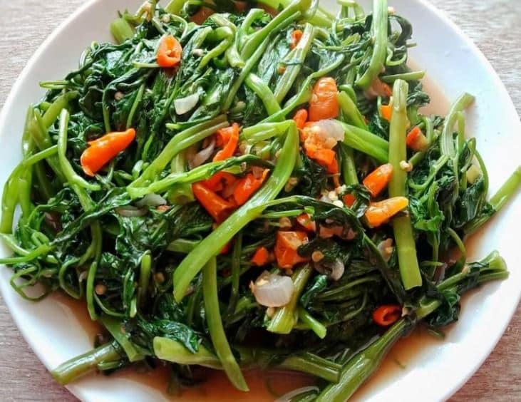 - Tambahkan kangkung, taburi garam dan gula, lalu aduk