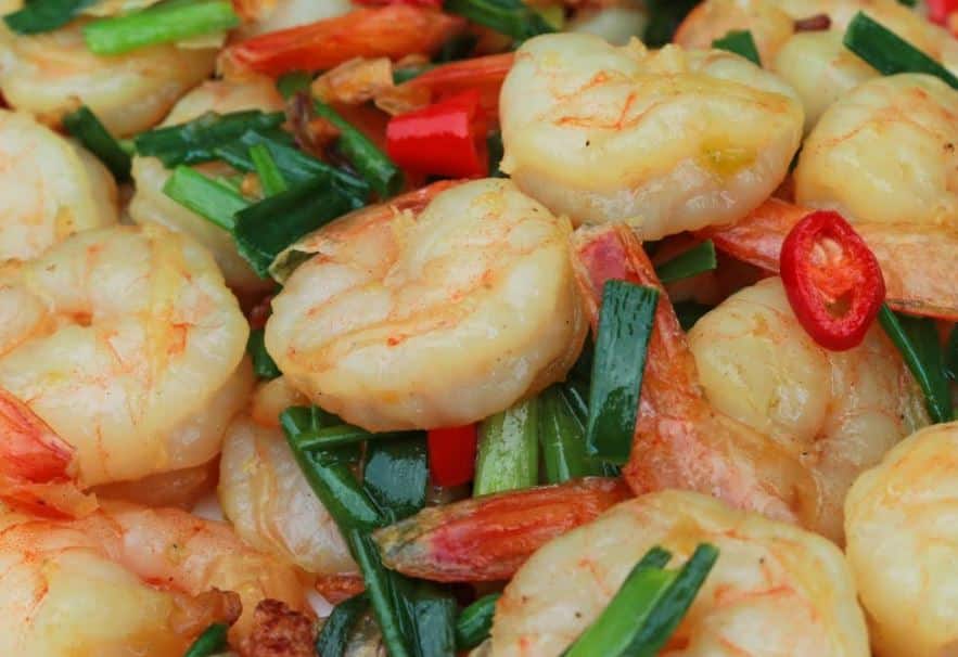 - Tumis bawang putih, lalu masukkan udang, tunggu hingga berubah warna.